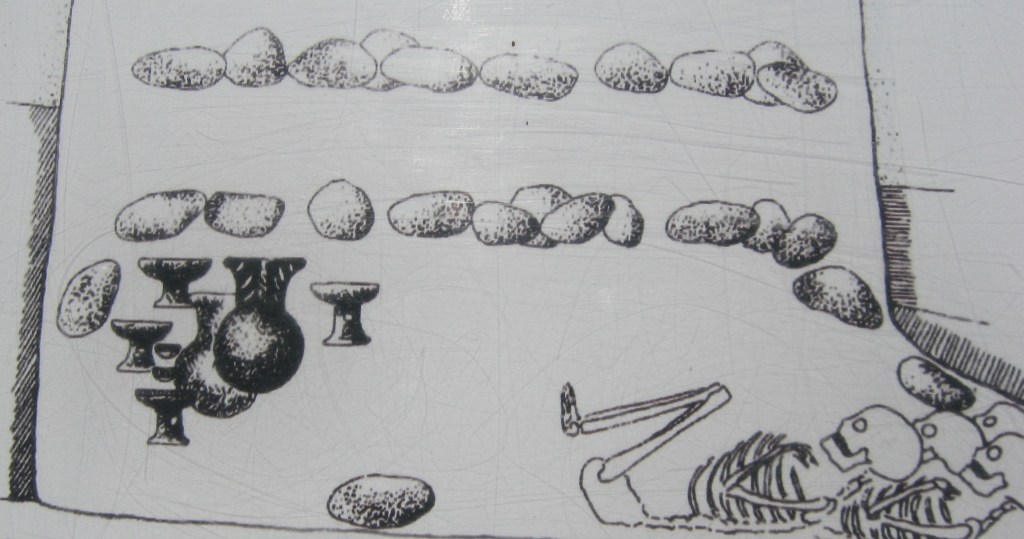 Pictured above, under the Wanka or monolith, was found to be a collective tomb of Canari origin. It had eleven individual corpses with abundant offerings like ceramic, copper pins, and spondylus shell beads.
