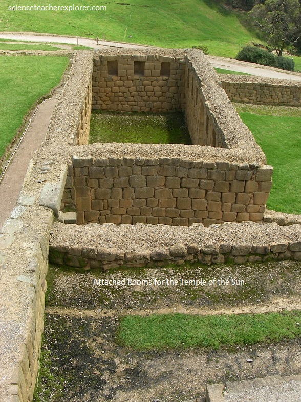 Pictured above, “Attached Romos” is a residential complex, directly related with the “Temple of the Sun”. It is a group of rectangular rooms, arranged around several internal courtyards. These spaces were probably dedicated to the Virgins of the Sun, and administrative and religious activities developed in this residential complex.