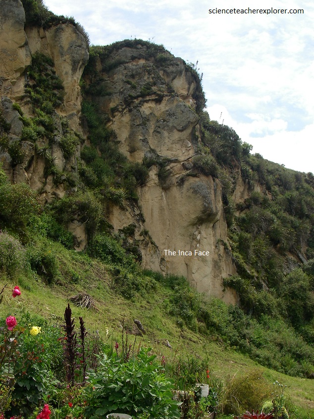 Pictured above, the “Inca Face” is located in the gorge of the Intihuayco. It is west from the ruins of Ingapirca, and rises towards the sky on a rocky cliff. This large outcrop of rock, is observed evoking the strokes of a human face and is known to the locals as the “Inganahui” face of an ancestor.