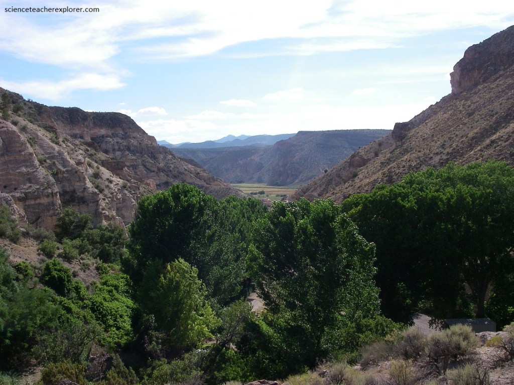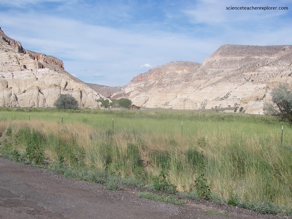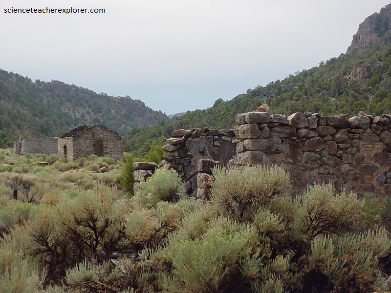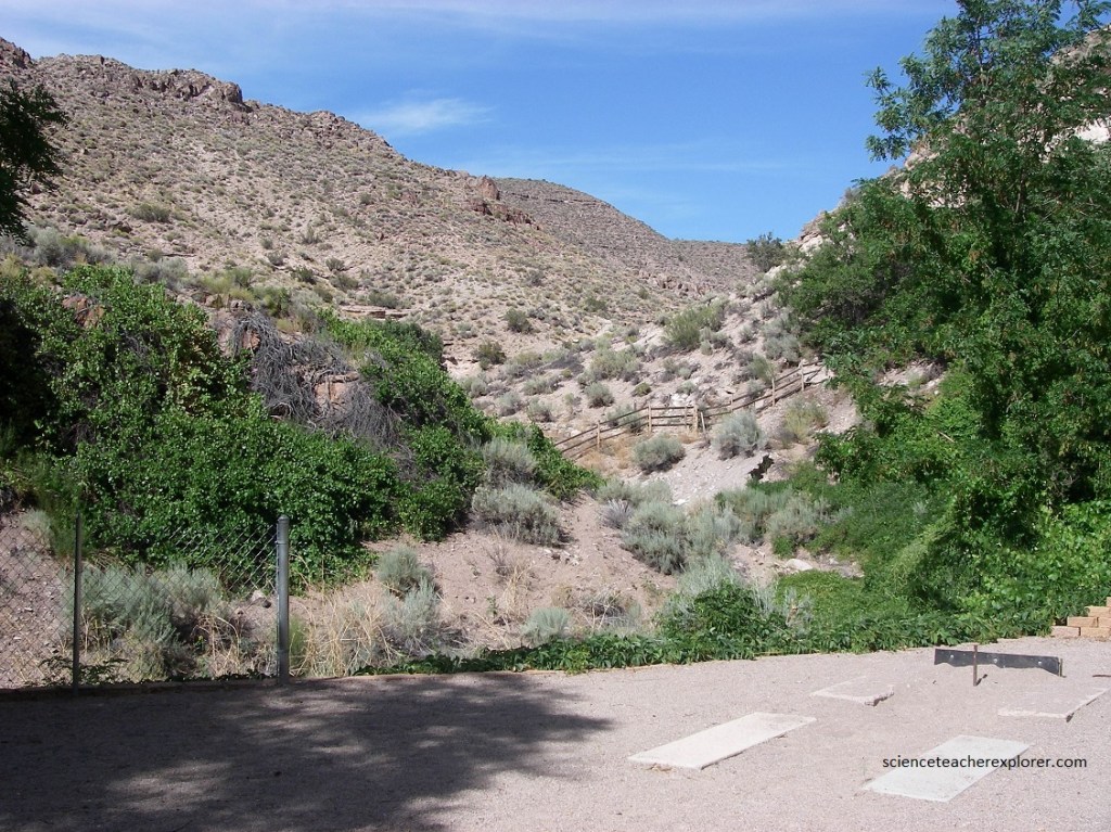 Apparently, Kershaw Canyon was named for Samuel and Hannah Kershaw who homesteaded the canyon in the 1870s. It is situated in a colorful, scenic canyon at the northern limit of Rainbow Canyon. The Kershaws’ cultivated a garden of grape vines, trees, and grassy lawn surrounding a spring-fed pond, providing a sharp contrast to the rugged landscape. It was an Oasis in the desert, (pictured above).