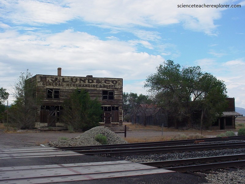 Modena was born in December of 1899 when tracks from the Utah and Nevada Railroad reached the area. Located west of the iron mines at Iron City, Utah, Modena grew into an important shipping and supply center, as well as a water stop for the steam engines of the railroad. Brigham Lund established a freighting business, serving the region and based in Modena. Pictured above, he opened a successful mercantile/hotel in the town, (still standing in 2003).