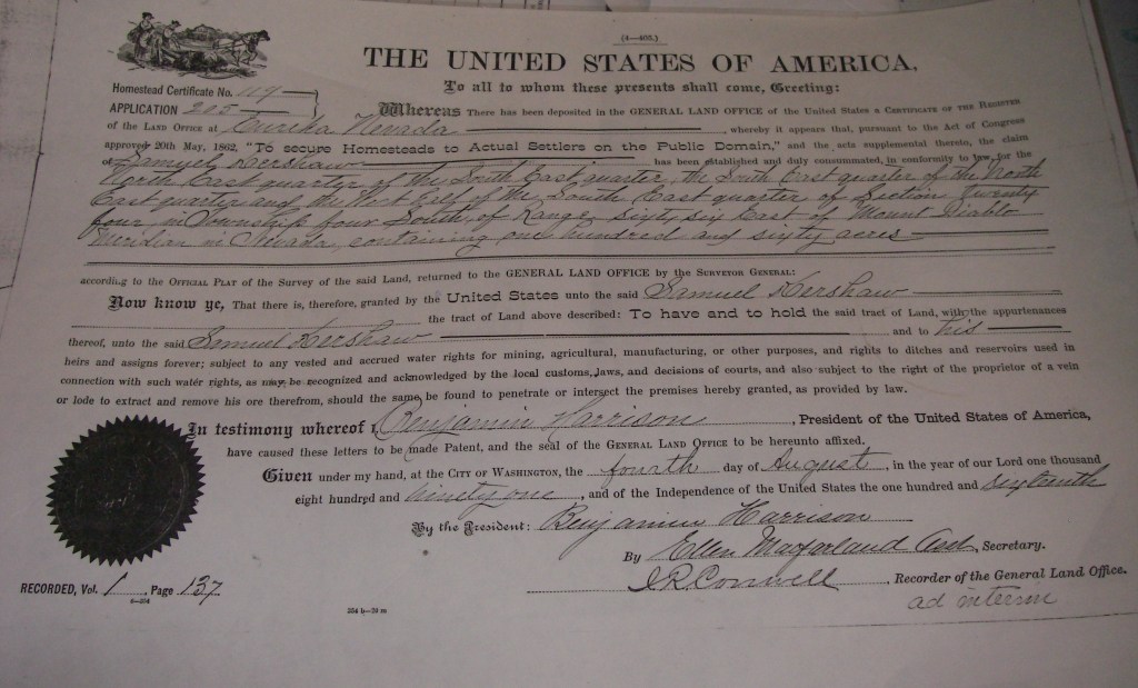 Gold an Silver were discovered in Hamlin Valley, (on the Indian Peak Caldera Complex) in 1894 and soon a town sprung up called “Stateline”. In 1896 the Ophir mine was basically discovered and this touched off a small stampede to the area and other major outcroppings were found to contain paying quantities of both silver and gold. The major mines in the area included the Ophir, the Johnny, and Creole. The ore coming out of the Creole in 1899 was so rich that the ore dump was successfully panned by the company.