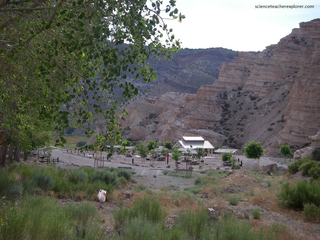 Pictured above, badlands rim the valley where erosion eats away the poorly cemented Panaca lake deposits to rapidly for stabilizing vegetation to gain a toehold. Adjacent to the cliffs stand tall and short hoodoos that are remnants of older spires. Cathedral Gorge records a history of dynamic events: volcanism, lakes, channels, weathering and erosion.