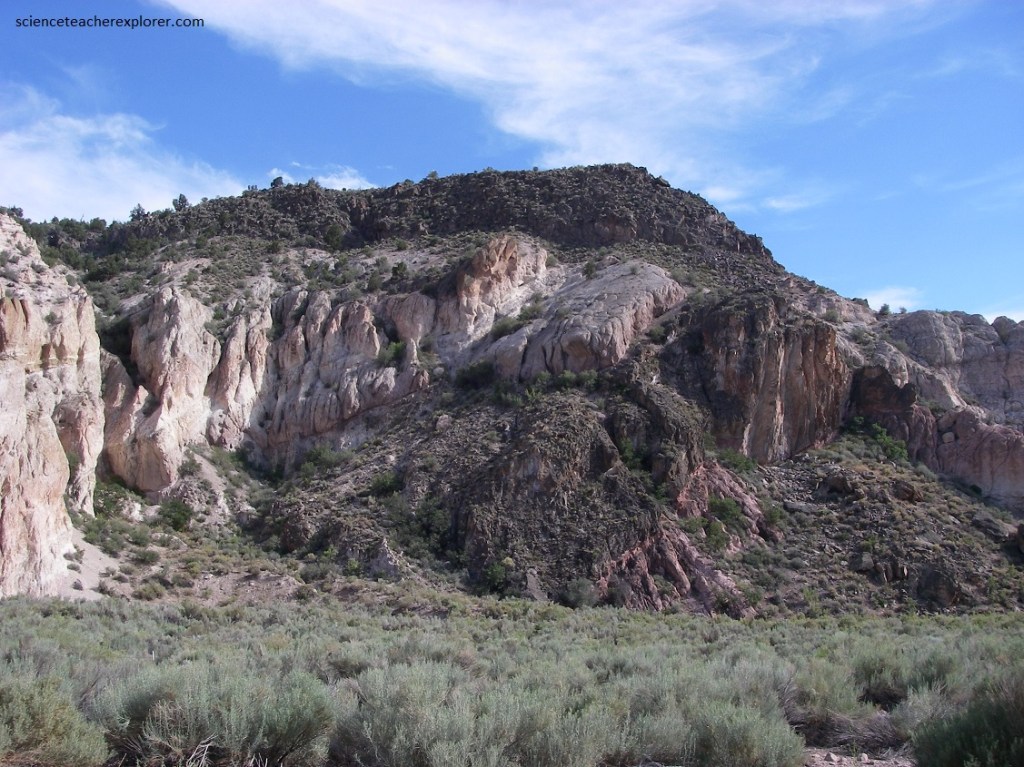 Explosive, caldera-forming volcanic eruptions were commonplace throughout much of this portion of Nevada from 30-19 million years ago, during Tertiary time. With regular, violent eruptions like this one near Caliente, this would of been a truly inhospitable place during the Tertiary time.