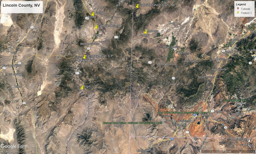 Our next point of interest was across the Utah/Nevada border to Caliente, Nevada. Heading west across the border on S.R. 56, we hit small farming community called Panaca, Nevada. We then turned south, on U.S. 93, and traveled few kilometers, to Caliente, Nevada.