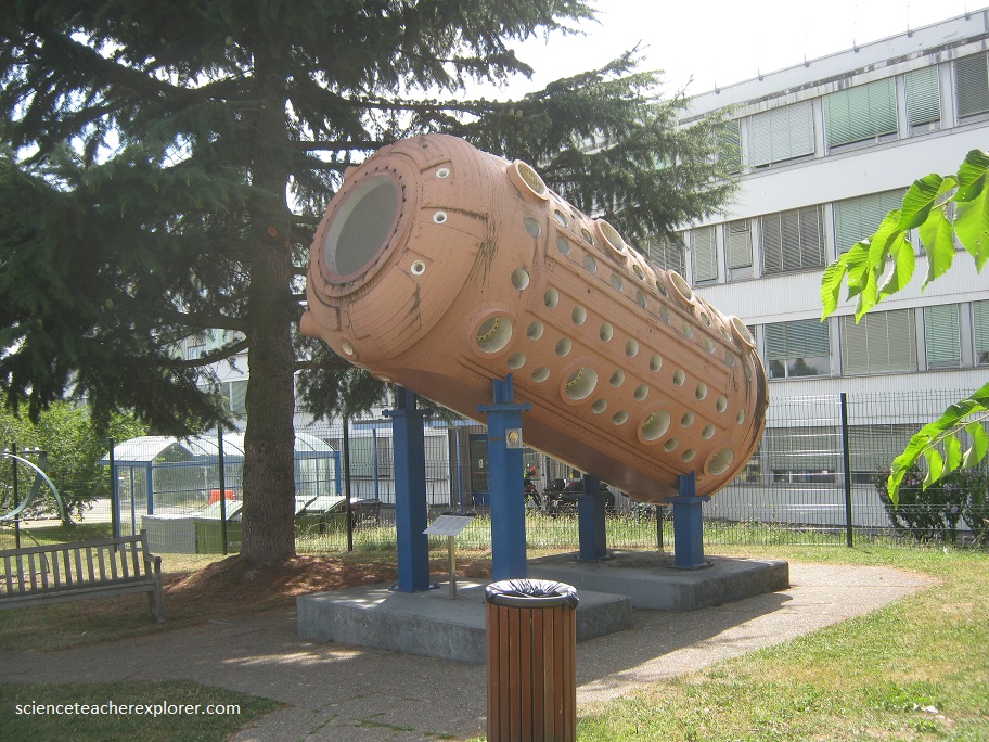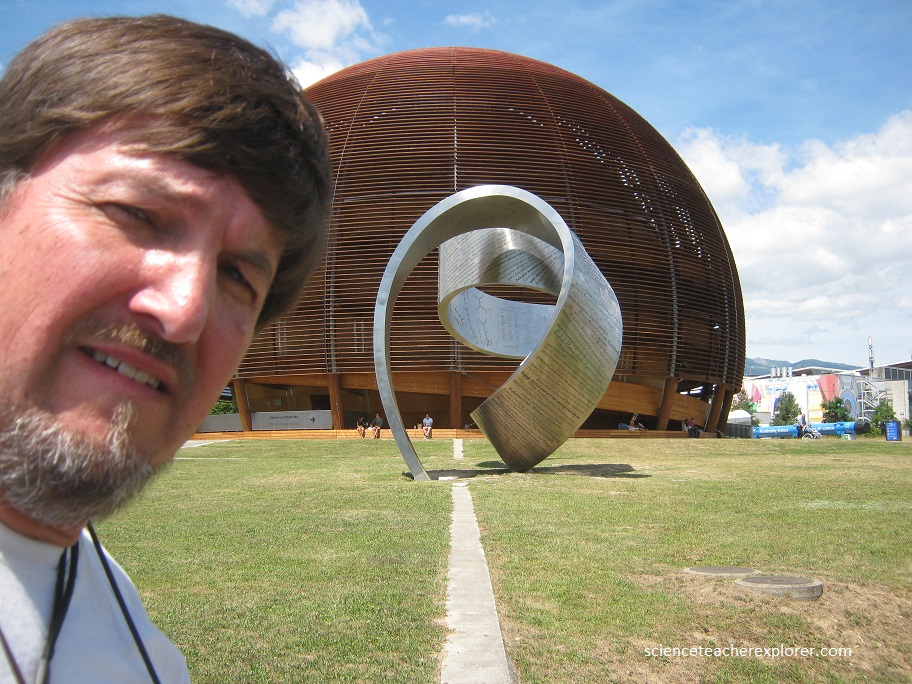 (Pictured below), I’m standing in front of CERN’s auditorium, across the street from Microcosm, (CERN’s interactive science center).
