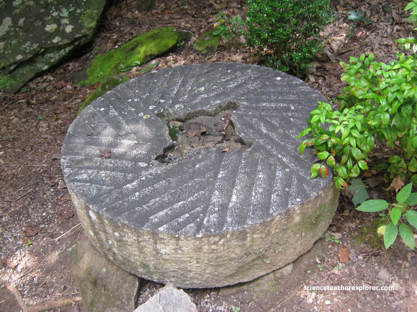 Pictured above, this millstone also lost in the flood of 1977. It was from a water-powered gristmill above the falls. Local businessman, Pinckney Heaton, operated the gristmill in the 1890s. The mill would grind different gains such as wheat, rye, oats, corn, or barley to produce flour or meal. However, the mill was washed away in flooding from heavy rains in 1899 that destroyed a number of mills along Toccoa Creek. The millstone was incorporated in landscaping the falls area in 1970. In 2008 the millstone was finally recovered in Toccoa Creek.