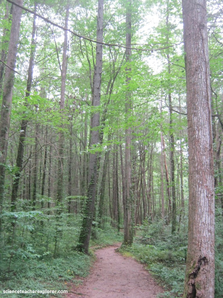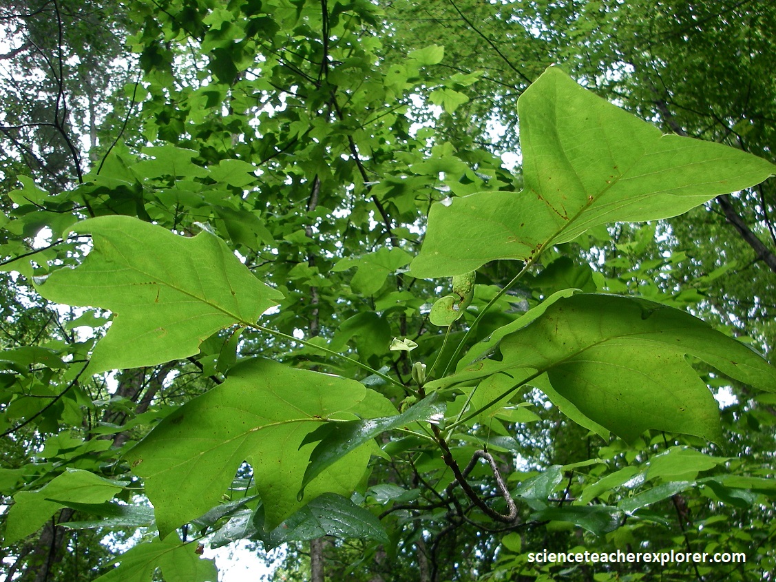 We noticed a tree along the Anna Ruby trail called the Canoe Tree. Also called a tulip tree, tulip poplar, or yellow poplar, this tree was a favorite among the Cherokee people for making dugout canoes. This beautiful native species can reach height of 67m and will often have no limbs until more than halfway up the tree, making it extremely valuable to the timber industry. The large green leaves resemble the silhouette of a tulip flower, (pictured below).