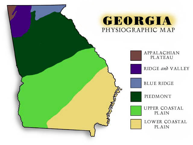 Alt GA 17 passes the Toccoa Reservoir and begins descending an escarpment about 13 km south of US 23 and 5 km north of Toccoa. Erosion resistant metagraywacke and quartzite underlie the higher elevations to the north. Whereas less-resistant amphibolite underlies the low ground to the south, (pictured below-left is the metagraywacke-quartzite and below-right is the amphibolite).