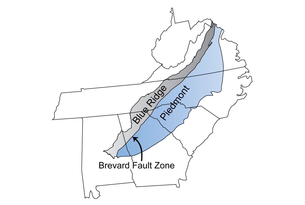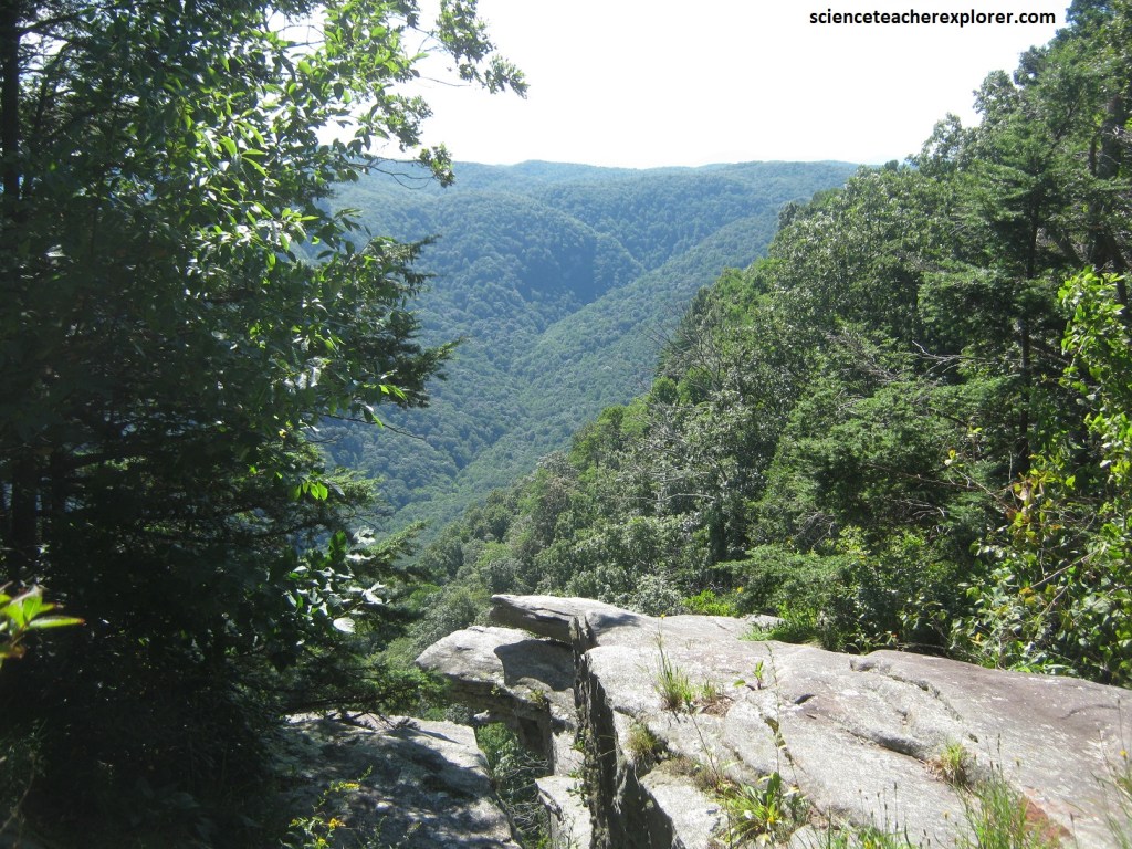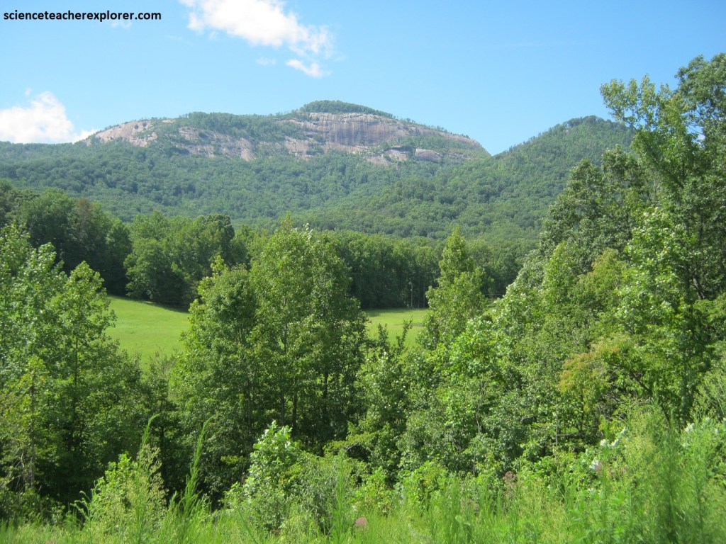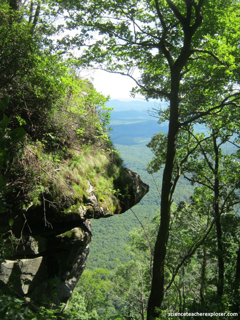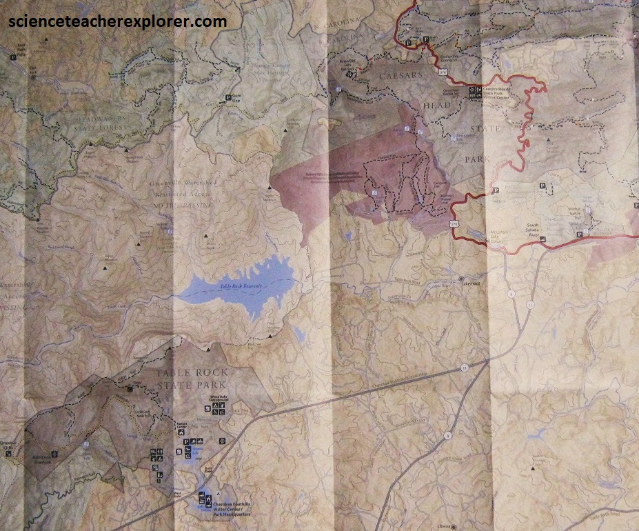 At the top of Caesars Head in Greenville County, South Carolina, we were standing on a cliff 1089m above sea level with a view on the edge of the Blue Ridge escarpment, (the topographic divide-line between the Piedmont and Blue Ridge). Pictured above, this escarpment is an abrupt change in elevation of up to 667m that runs from Virginia through North Carolina into South Carolina. In some places, such as Caesars Head, the escarpment is essentially vertical. In other places, it is not a cliff, but rather a steep slope.