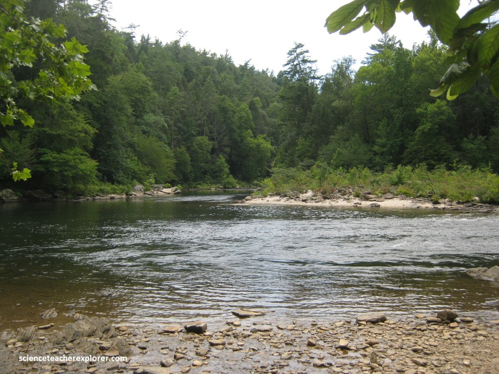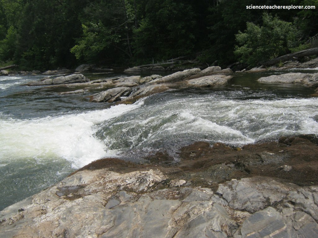 Pictured above, the Woodall Shoals outcrop is an 8,000 ft2 broad, flat area of rock in the streambed, about a half a kilometer walk from the Woodall Shoals recreation site parking lot.