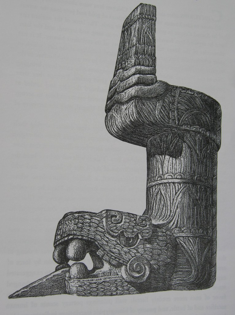 Pictured above, on the Tzonpantli’s eastern wing, are Eagles portrayed with many snakes and grim figures of emaciated warriors holding severed human heads. Skulls are not rare motifs in Maya art and human sacrifice was occasionally depicted, but they are usually executed with dignified restraint; but nothing compares with this rude and vigorous portrayal of a practice that reflects not the piety of sacrifice but the vengeful intent of mass execution of enemies and the preservation of their heads as trophies of war.