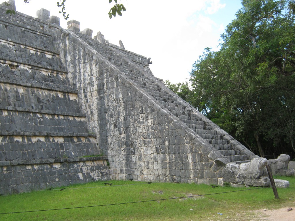 Pictured above, as we approached Chichen Itza from the west, El Castillo (also called the Temple of Kikulcan), towered above the vegetation and was visible from some distance away. It was near the entrance to the site and was centrally located in a large open area called the North Terrace, or “Central Plaza”; like the other principal structures in the north area of the site, it is “Toltec” style.
