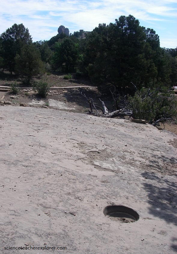 From the stone basin, the Ancestral Puebloans could watch the sun rise over the north wall of the Great House on the summer solstice.
