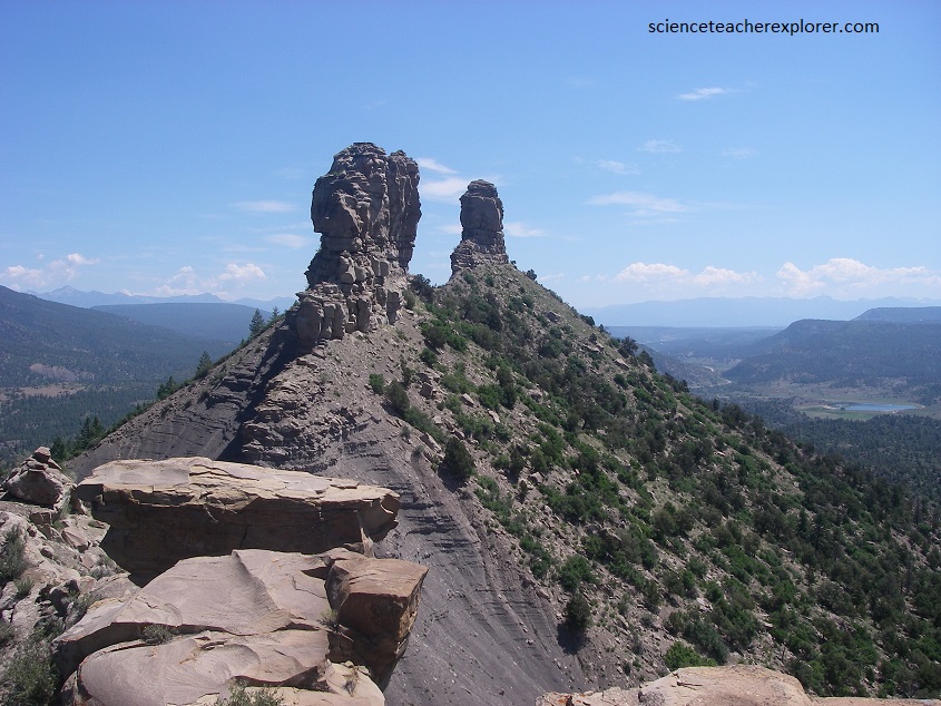 The pinnacles provide a striking example of differential erosion in which the overlying sandstone erodes much more slowly than the under-lying shale. Here, the Lewis Shale and Fruitland Formation (sandstone, shale, and coal) have eroded more quickly, leaving the resistant Pictured Cliffs Formation standing high in the landscape.