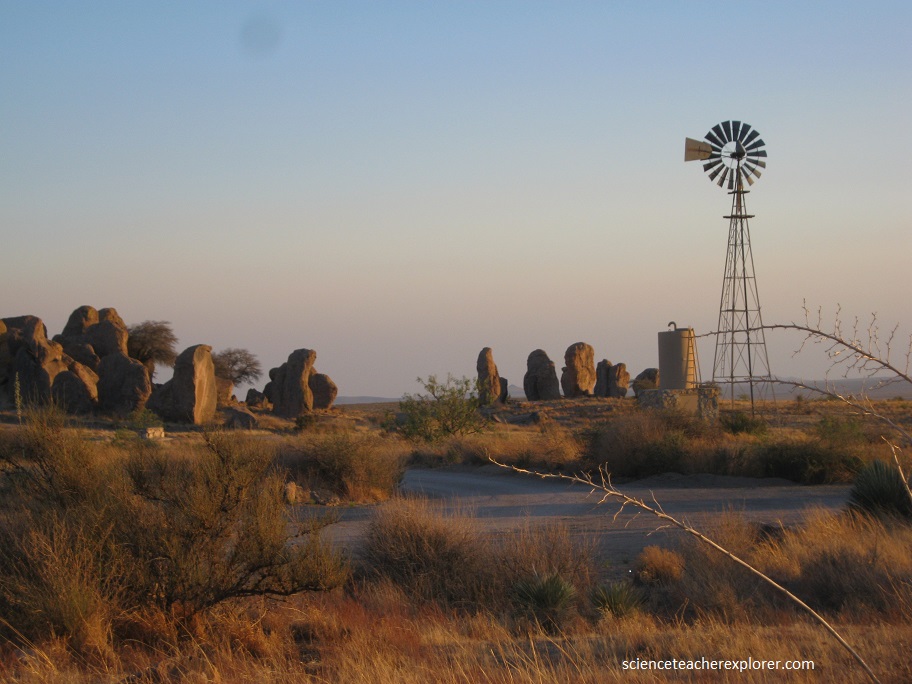 When approached from a distance, the giant rocks appear like a city on the horizon–(a dense conglomeration rising our of a mesa), pictured above.
