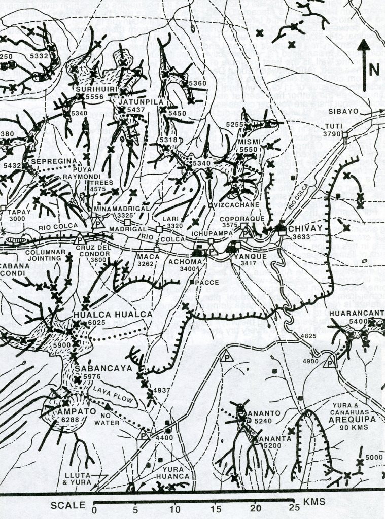 To get to Colca Canyon, Kathy Stoker, (my trekking buddy) and I rented a car and took the spectacular 154km drive from Arequipa to Chivay, Peru. This route made a half circle around the Chivay’s two sentinel volcanoes, El Misti (5,822m) and Chachani (6,075m), before traversing the high plains of the vast, barren Salinas and Aguada Blanca National Reserve.