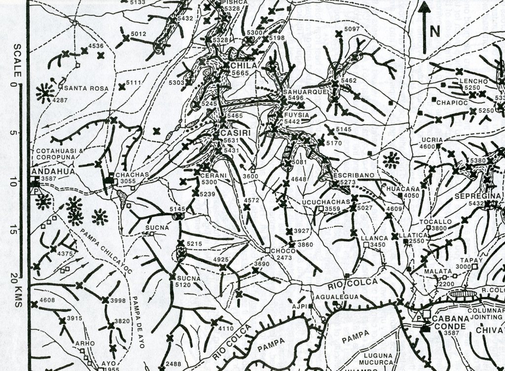 This route to the small village of Chivay, required us to pass over the Patopampa Pass (4,910m). The altitude was extremely high and the rarefied air caused the temperature to drop below freezing. There at Patopampa Pass, we could see a couple of kilometers of frozen waterfalls next to the road. After tasting the rarefied air of the Patopampa Pass (4,910m), we dropped sharply into Chivay (3,630m).