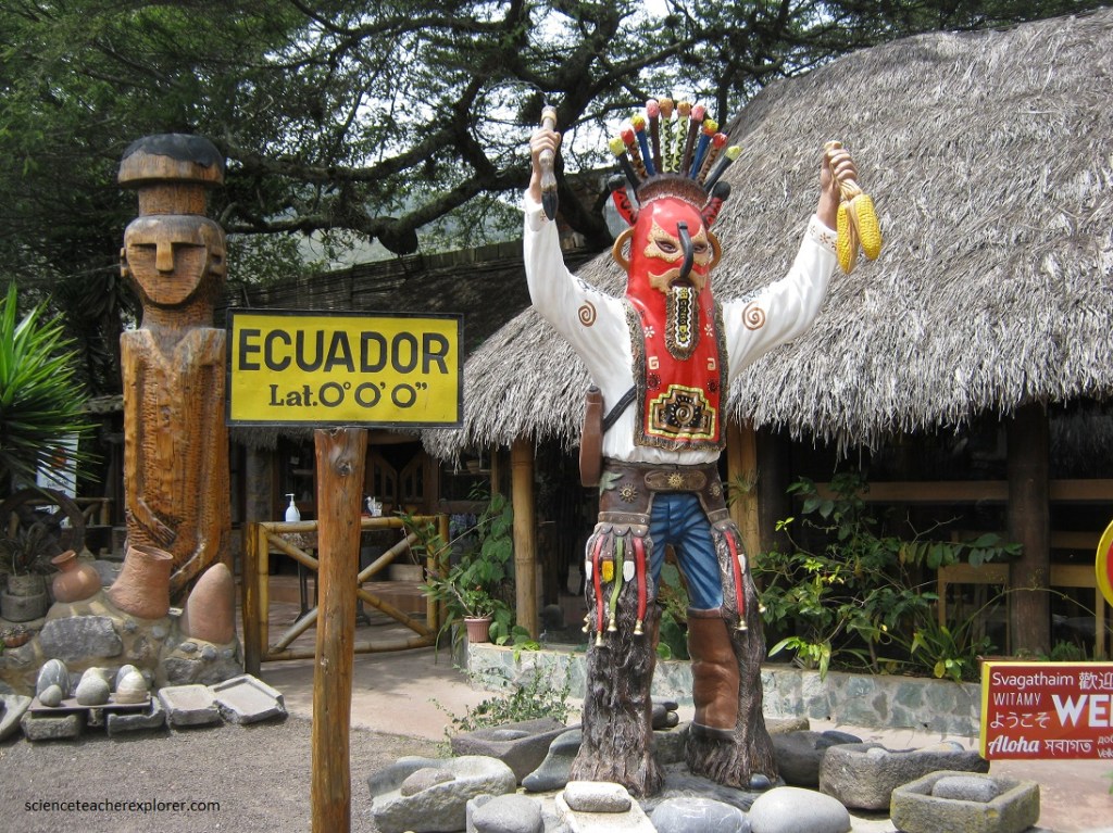 Pictured below, the Intinan Solar museum is an amusement for credulous tourists. The tour guide and visitors demonstrated tricks which are supposedly possible only on the Equator, such as water flowing both counter-clockwise or clockwise down a drain due to Coriolis effect, balancing eggs on end, or weakening of muscles due to latitude. However, after my teasing, our tour guide admitted the truth that proximity to the equator has no measurable influence.