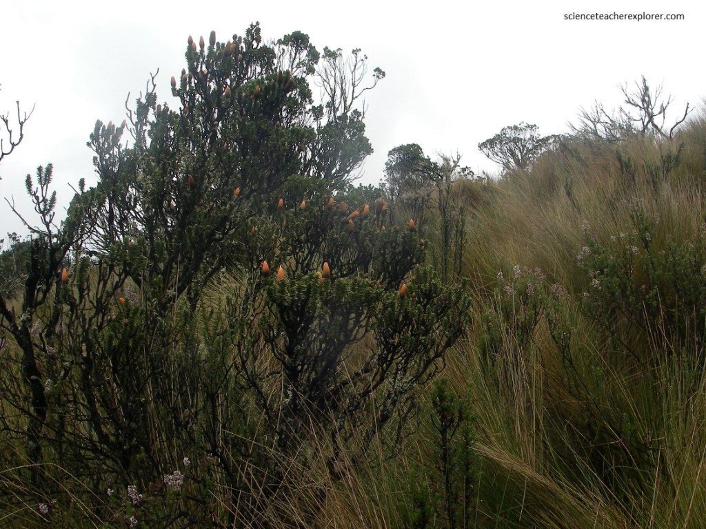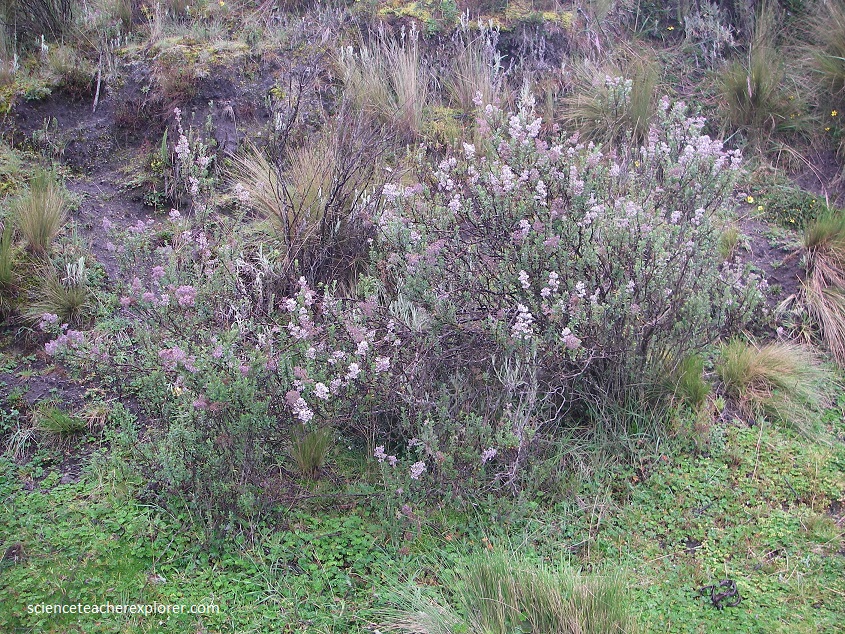 The climate here is harsh (cold, windy, and with high levels of UV light), so many plants are small with low-growing flowers. As much as 60% of the plant species in the paramo are endemic, (pictured below).