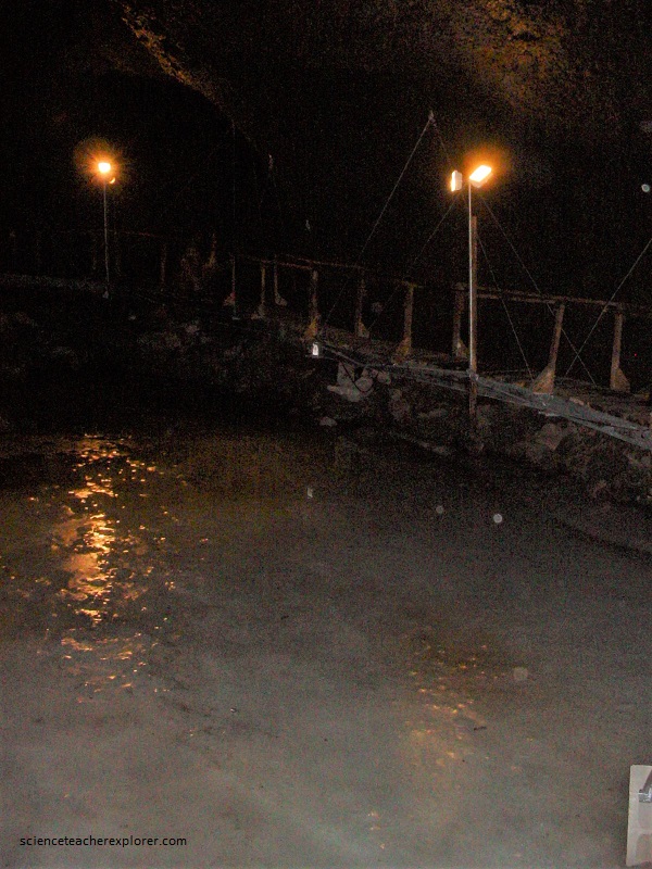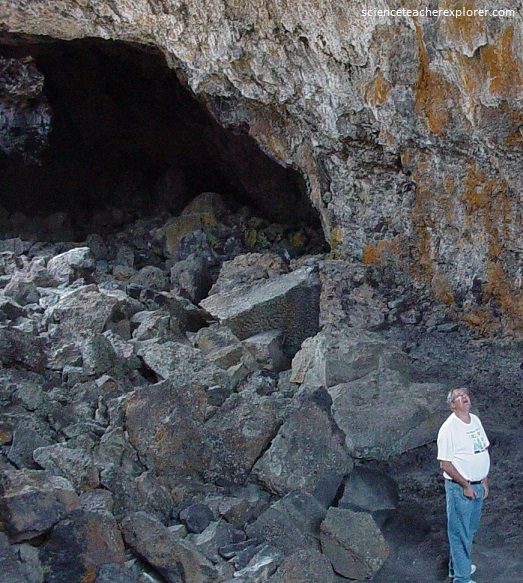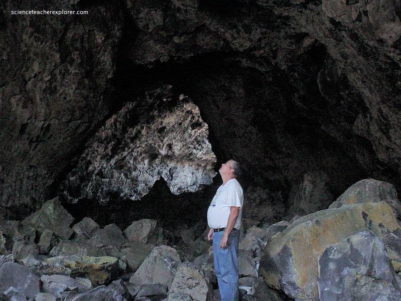 Pictured above, tunnel ceilings are prickly with lava stalactites that vividly illustrate the fluid condition of the lava as it drained out of the tunnel. [Note that the ceiling is sometimes not supported enough and it fails by falling in].