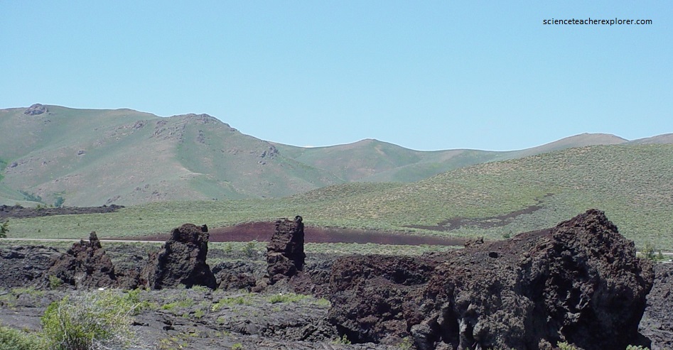 Upon entering the Monument the road leaves the sagebrush desert and enters an area of barren black cinders and basalt (lava). Here, the road winds among the smooth cones and across strips of rough, fresh-looking rock. The similarity of the dark craters and the cold basalt nearly destitute of vegetation to the surface of the moon as seen through a telescope gives to these peculiar features their name. The Monument comprises the most interesting and recent part of a vast basalt field that covers hundreds of square kilometers and merges westward into the Columbia Plateau. This Plateau cover about 300,000 square kilometers.