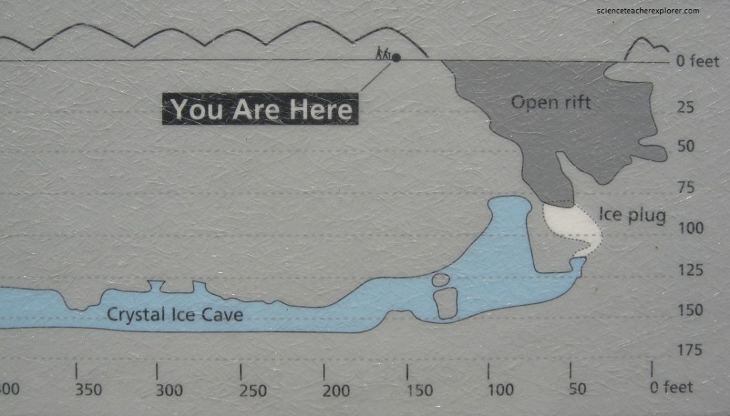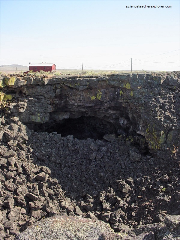 Pictured above, the tunnel once led to Crystal Ice Cave where, as recently as the 1980s, massive columns of ice attracted thousands of visitors. Ice seems unusual in a formerly fiery volcanic fissure. In the heat of midsummer, the idea of ice here seems even more unlikely.