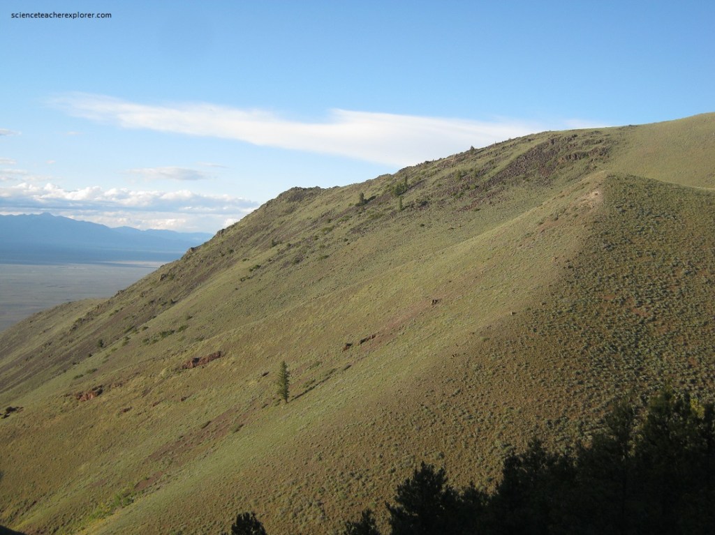 Pictured above, Big Southern Butte’s steep slopes reflect the magma composition of lava domes. The rhyolitic tacky lava does not flow far, accumulating and stacking up upon itself to form a steep, massive pile. Occasionally, the slow and steady extrusion is interrupted or preceded by minor explosive outbursts of ash, caused by the release of gases trapped in the sticky magma.