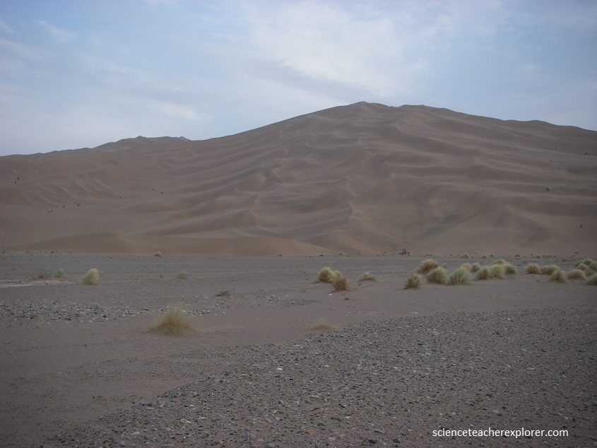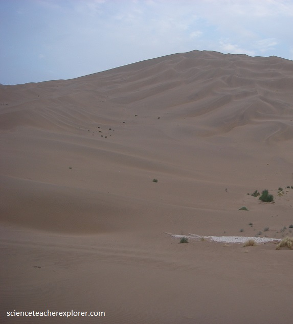 On days when a strong wind blew, the fast shifting sand roared; but when the wind was little more than a light breeze, the sand produced gentle, dulcet sounds akin to music. It is the same when we were sliding down the mountainside. At first, the sand under our feet whispered; but the further we slid, the louder the sound until it reaches a crescendo like thunder or a drum beat. Some say that the sand was singing, while to others it is like an echo and this is how the mountain gets its name, (pictured below).