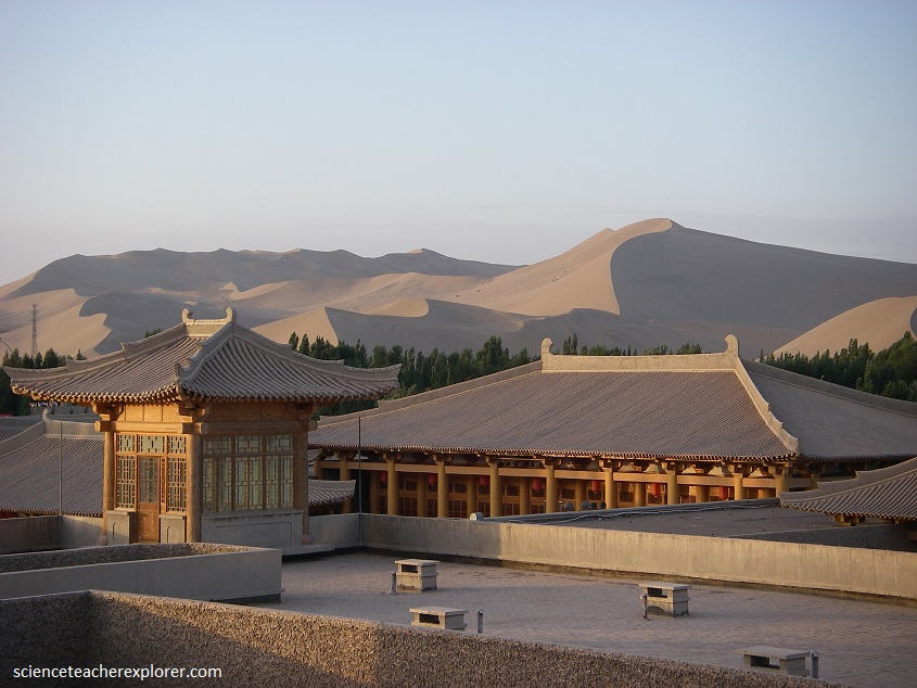 Unlike most sand particles, which are coarse and irregular, the particles of the Mingsha “Singing Sands” are round and smooth. In dry weather conditions, these particles of sand rub against each other, creating an eerie musical sound.