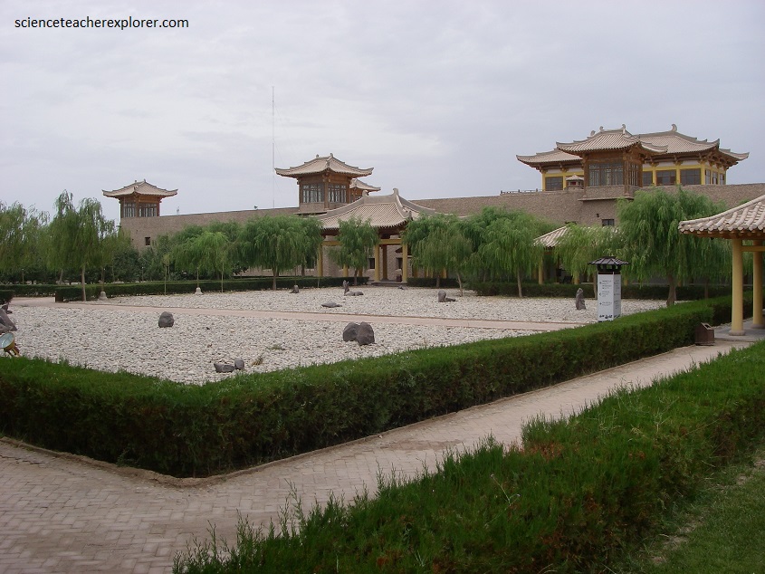 While spending a week within the area of the sand-dunes, my trekking group stayed at the “Silk-Road Dunhuang Hotel”. Dunhuang is situated on an oasis in the Gansu-Xinjiang desert region. Dunhuang is at the far western limit of traditional Chinese settlement along the Silk Road across Central Asia. Dunhuang was the first trading town reached by foreign merchants entering Chinese-administered territory from the west.