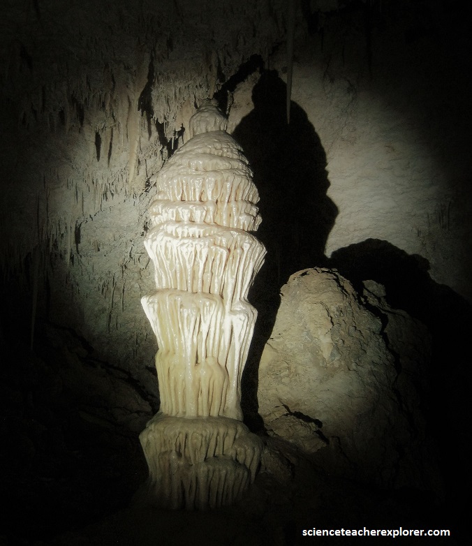 Vadose speleothems such as the stalactites, columns, and rimstone pools found in Crystal Ball Cave form subaerially in caves having enough gas exchange with the surface to allow carbon dioxide to escape from the dripping groundwater.
