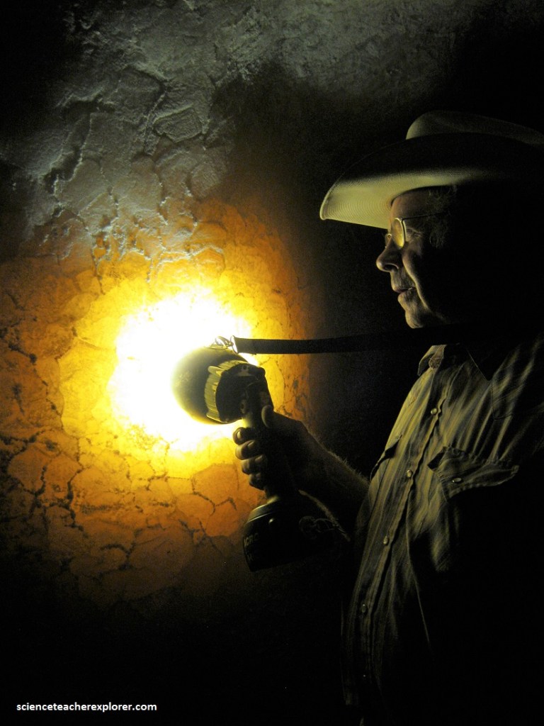 The Crystal Ball Cave was discovered by the late George Sims of Gandy in February, 1956. He found the original 1 meter diameter entrance that leads into a large chamber. The original east entrance was enlarged, the north entrance was blasted out through a soil-filled passage at the other end of the cave, and other improvements were made by Cecil R. and Jerald C. Bates of Gandy, Utah. I was to meet Jerald C. Bates, to give me a private tour of the cave.