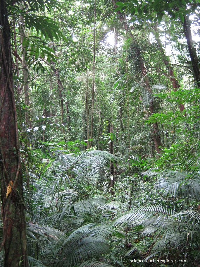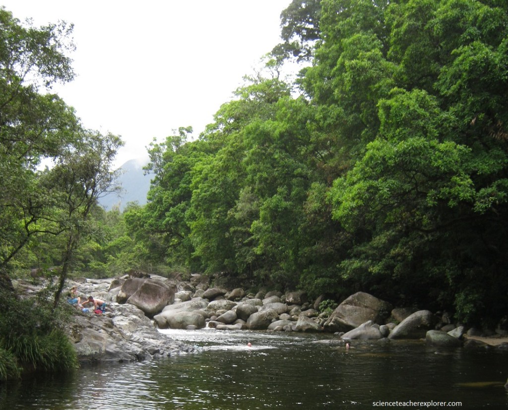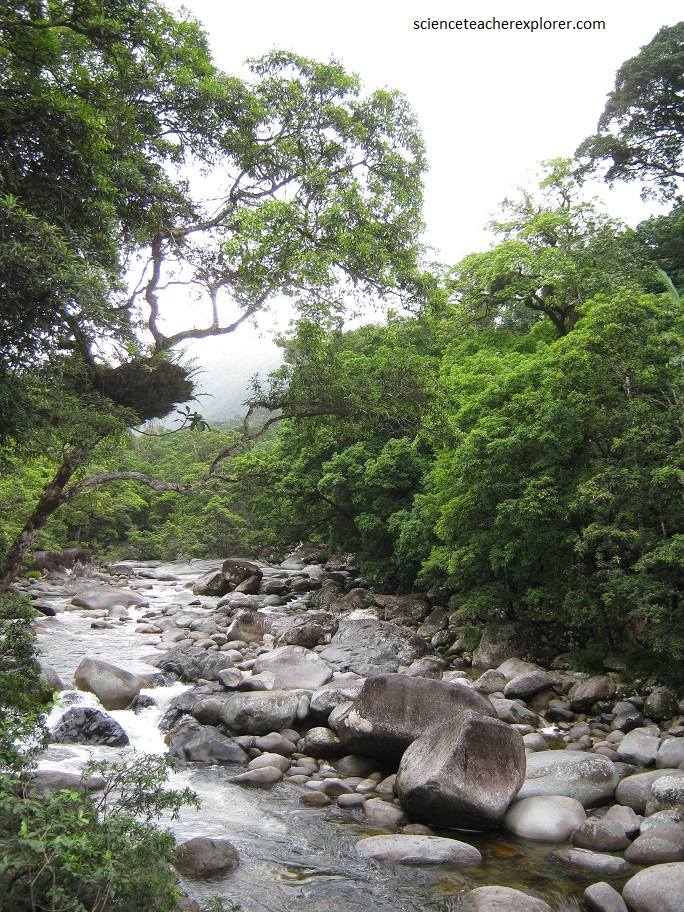 Pictured below, here, the Ficus tree, crowd each other and dense canopies of the rainforest, blocking most of the light. One of the largest rainforest wilderness areas in Australia centers around the Mossman River Gorge and the Daintree River valley.