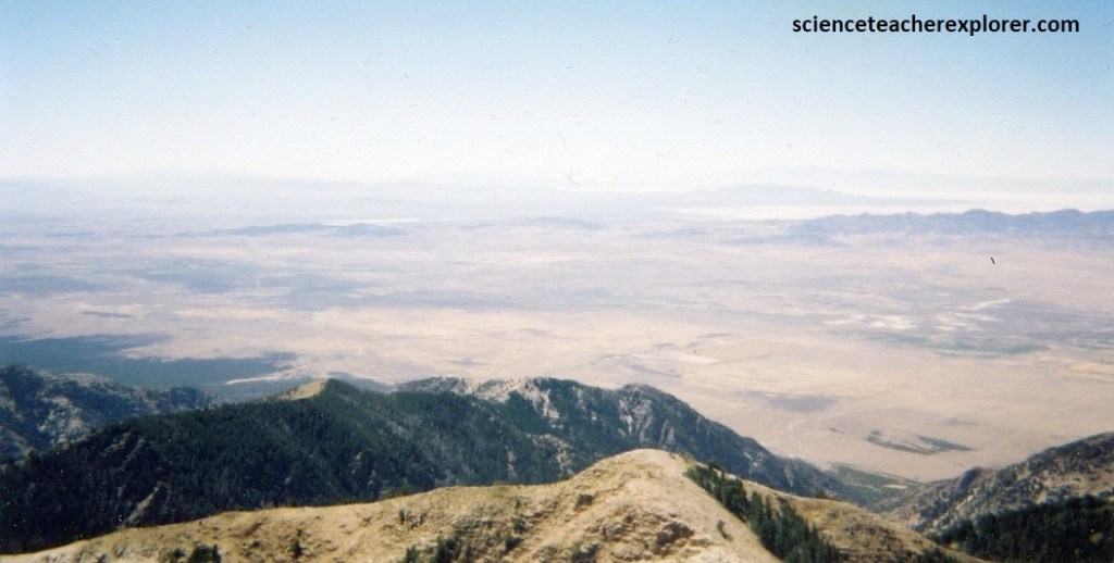 Pictured below, the southwestern side of Deseret Peak is look at what the Great Basin is all about. The Great Basin is a vast, semiarid desert that extends from the Wasatch Front, across Nevada, to the Sierra Nevada mountains of California. The desert is not unbroken, though. It contains a number of narrow, isolated mountain range, running mostly in a north-south direction and separated by long desert valleys, like the one below called Skull Valley.