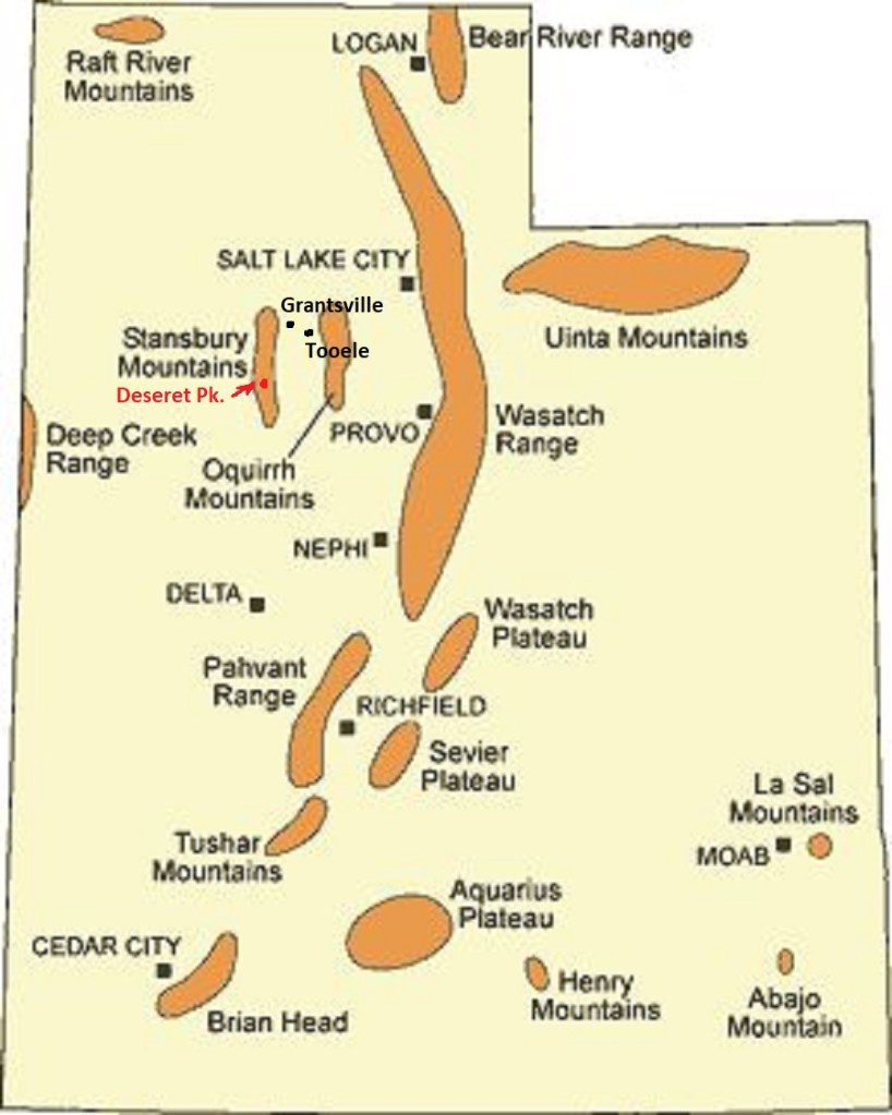 Deseret Peak (3362m) is the highest summit in the Stansbury Mountain Range. These mountains are located west of Salt Lake City and Tooele and southwest of Grantsville.