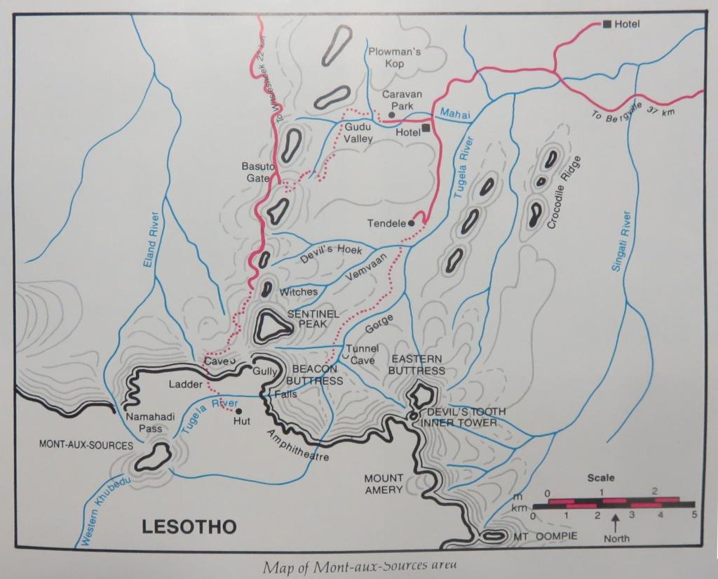 In 1836, two French missionaries looking for the source of te Orange River arrived at a magnificent escarpment near a peak know to the Basotho as “Pofung”, (the place of the Eland). Although the misunderstanding that the peak was the source of the Orange, Caledon, and Tugela rivers has now been modified, the name of Mount-aux-Sources has remained.