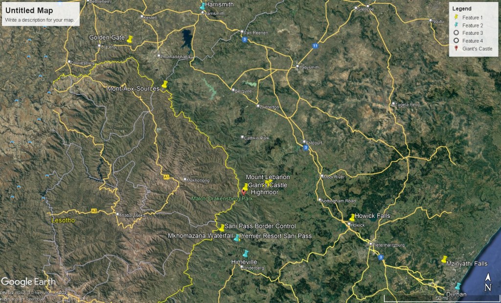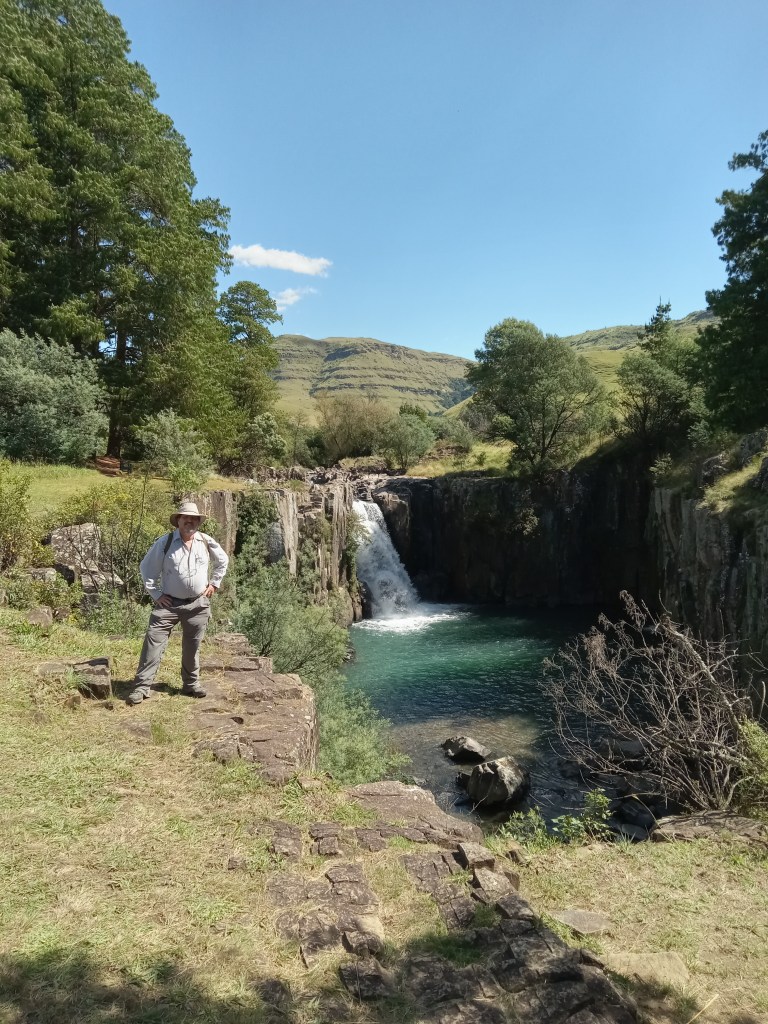 In the Spring of 2023, a trekking buddy (Mike Stevens) and I explored the KwalZulu-Natal region of South Africa. There we trekked below the Drakensburg Range. The Drakensberg range, (a vital watershed in the dry subcontinent), stretches from the Eastern Cape, near Durban, to the point where Lesotho meets the South African provinces of the Free State and KwaZulu-Natal, (at Mont-aux-Sources at a height of nearly 3,300 meters & Harrismith).