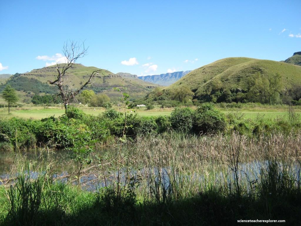 Pictured above, the Mkhomazona River Valley is a demonstration of aggressive erosion along the escarpment, progressively cutting back ever since the break-up of Gondwana.