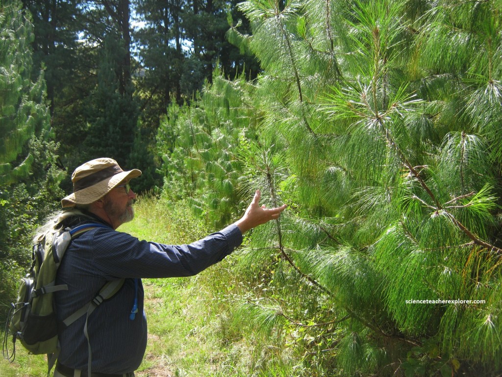 Picture above, Mike Stevens is checking out a Weeping Pine near Mkhomazana Waterfall. The Patula pine Pinus patula is a coniferous tree which grows to a height of 30 m or more and attains a diameter at breast height of up to 1.2 m. It can rapidly invade grassland and shrub land where they can compete with native plants, affect fire and hydrological regimes. They seem common in South Africa, and is an invasive species.