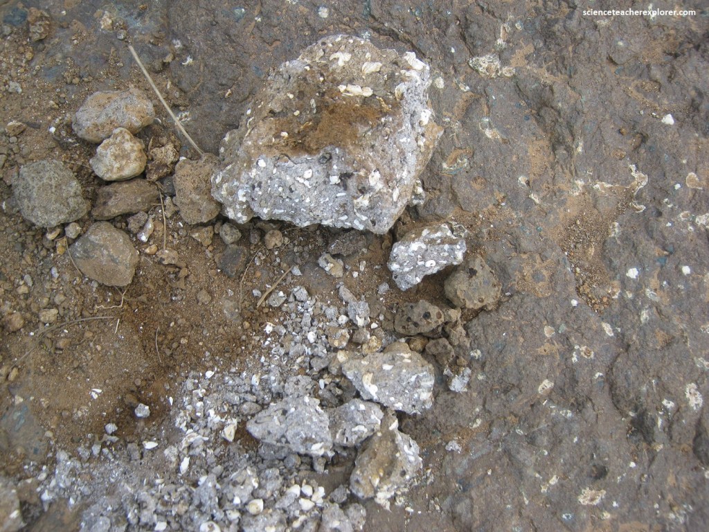 Pictured above, amygdaloidal Drakensberg lava formed as steam or gas cavities within the very liquid lava flows and are usually rounded to irregular but may be pipe-like and branching, indicating upward movement of vapor in very liquid lava.