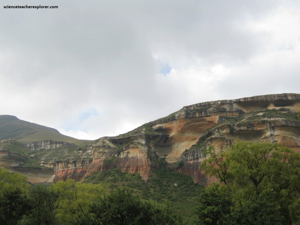 The Clarens Formation cliffs are over 100m high and the layering of the rock can be clearly seen. The more resistant layers actually appear to reach out from the cliffs.