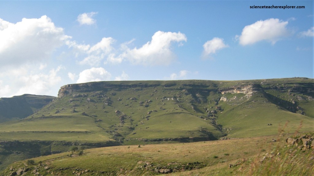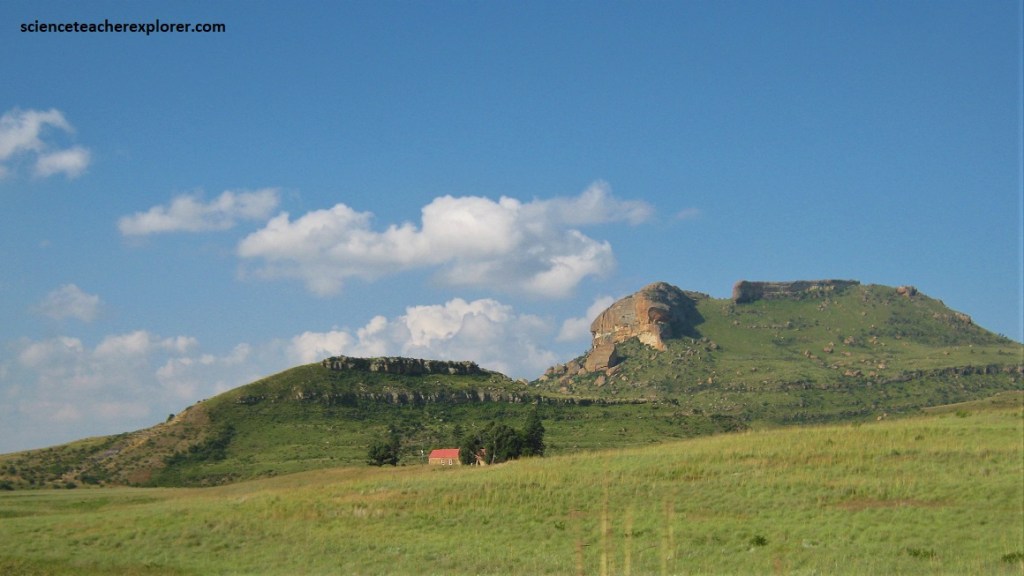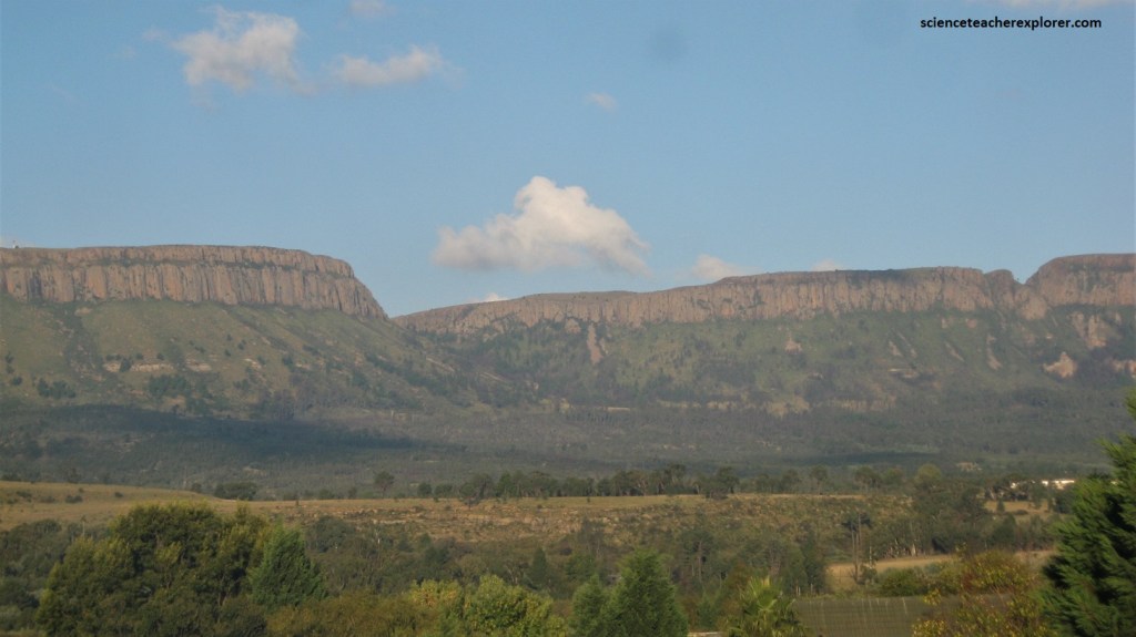 It is geologically linked to the Drakensberg Escarpment, and is a fine example of a mesa or ‘table mountain’. The surrounding plain has been completely eroded down and is part of the long-live African erosion surface that formed following the break-up of Gondwana, leaving the mountain an isolated inselberg, a mere remnant of an earlier land surface.