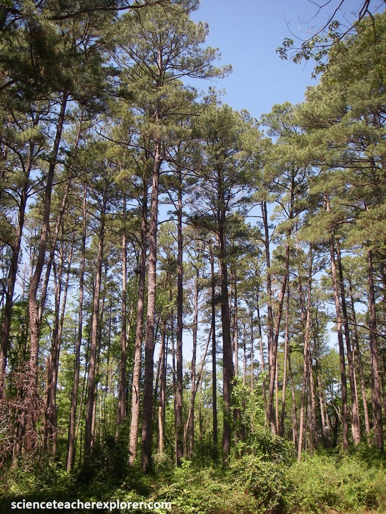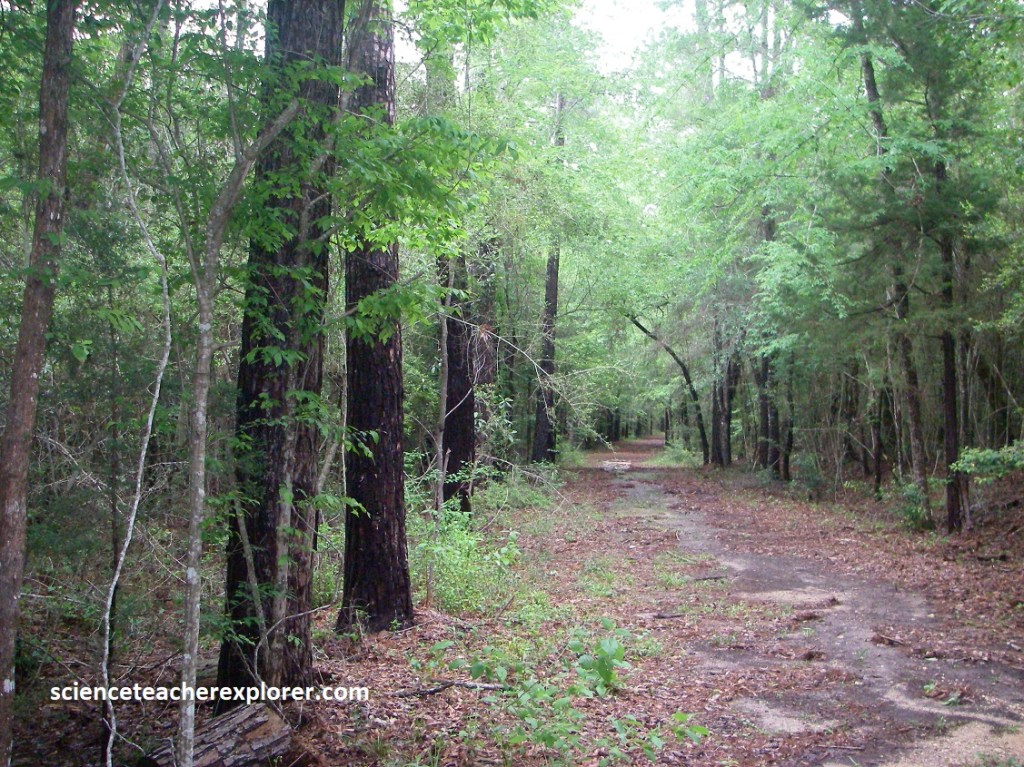 Picture above, it’s all downhill from the Upland Forest! Nutrients and rainwater from the Upland Forests flow downhill toward Caddo Lake. Here in the dry Upland Forest, the shortleaf, loblolly pine, oak and dogwood trees spread leaves to shade the woodland floor and protect light-sensitive creatures below. Many animals live or rest in these trees. They eat the leaves, nuts and other matter that grows on or beneath the canopy. Migrating birds also find refuge here on their long journeys.