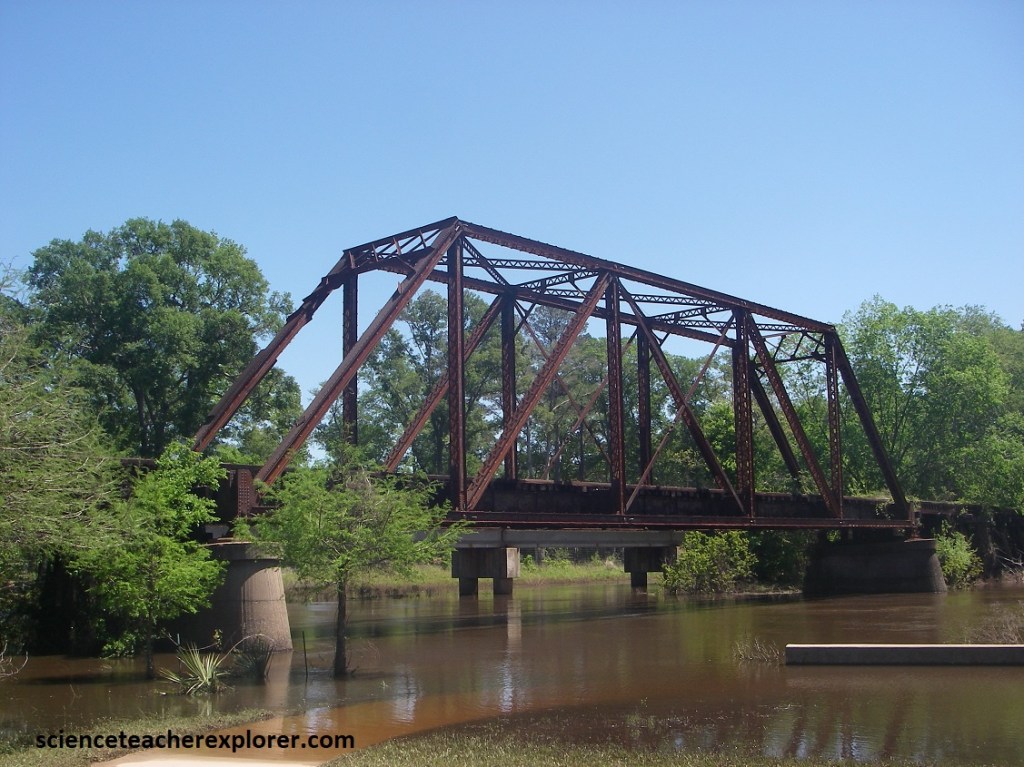 In the mid-1800s, Jefferson was regarded as the steamboat entry port into Texas, when the Army Corps of Engineers cleared the Red River Raft, the water level near Jefferson fell and steamboats could no longer reach the town year round. In 1873, Jefferson was first connected to the National Rail Network, through the Texas and Pacific Railway. In the 1890s, the Sherman, Shreveport and Southern Railway build tracks east from Jefferson to the Texas-Louisiana State Line. The first bridge over Big Cypress Bayou was a wooden trestle, (in 1907 an iron bridge), This bridge allowed for commercial and private trains to cross high above the water. A truss bridge is a load-bearing structure of connected elements usually forming triangular units. Truss bridges are representative of common bridge types of the late 19th and early 20th centuries. William Howe’s Design, (American Architect 1803-1852) is composed of diagonal structural beams that slope towards the center in compression with the vertical web members in tension.