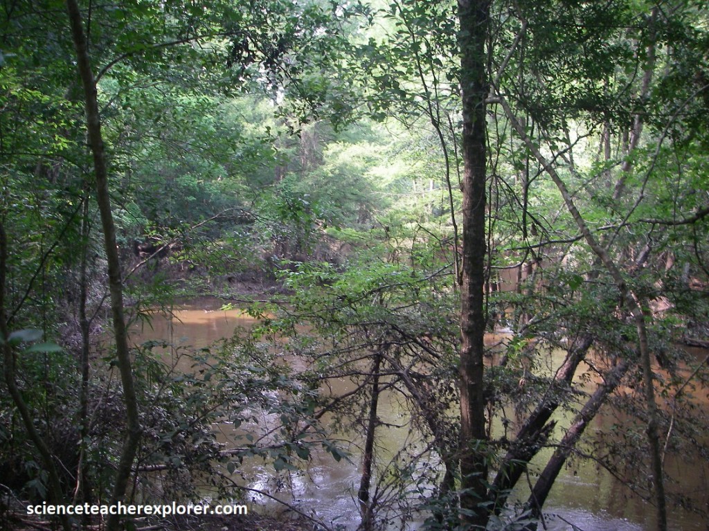 Water moves quickly in and out of the bottomlands forests, scouring the forest floor and leaving a sparse understory. The closed canopy filters sunlight, further discouraging groundcover growth and creating a strange green light.