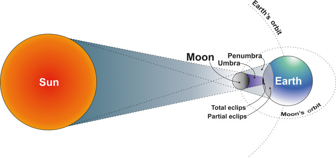 A Total Solar Eclipse happens during the daytime, and is when the Moon passes directly between the Sun and Earth. When this happens, the shadow of the Moon falls across parts of the Earth and if you are inside the area known as the Umbra, or directly in line with the Sun and the Moon, the Moon will block out the Sun’s light and we get to see the Sun’s corona, also known as its Crown.
