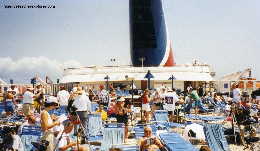 In February 1998, Becky (my wife) and I booked a Caribbean eclipse cruise to observe our first total eclipse of the Sun. Carnival’s 71,000 ton MS Fascination took us to six ports-of-call, (two of them in Aruba), through the Caribbean during the week leading up to the eclipse.