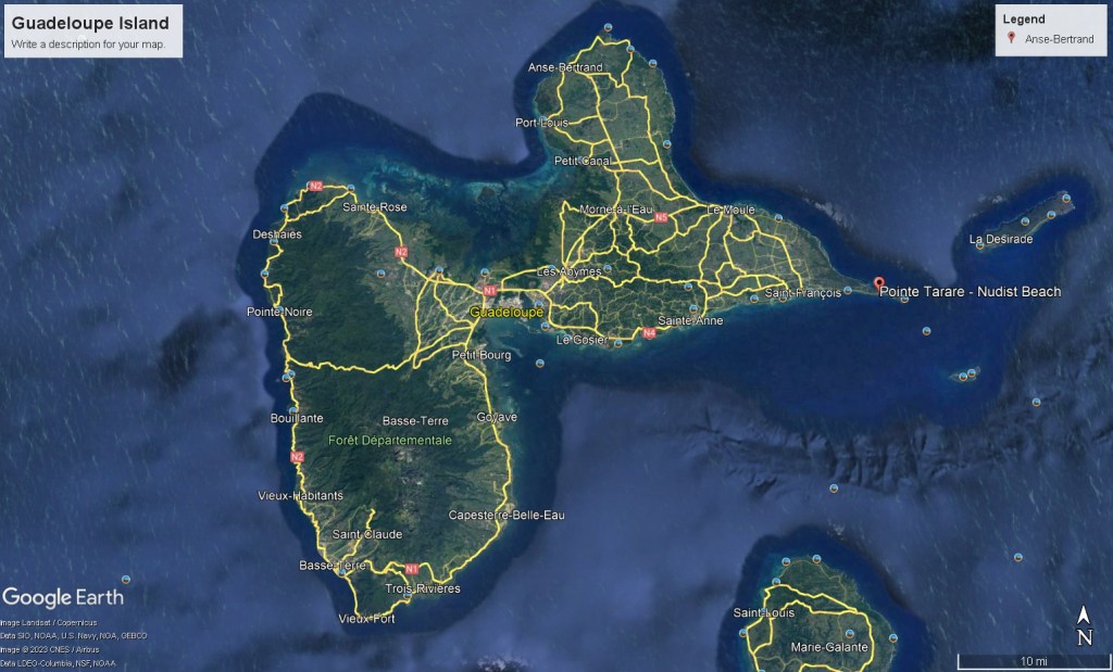 However, when we debarked off of the ship at Pointe-a-Pitre of Guadeloupe, I couldn’t find a driver that would take me to the volcano. They all refused! So we asked a driver to take us to the best local beach for snorkeling. He took us to Anse Tarare or Pointe Tarare. And, to our surprise, this was a nude beach for the locals and tourists. Luckily, it was a clothing optional beach and we decided to go clothed. We were the only clothed and shy people on the beach.