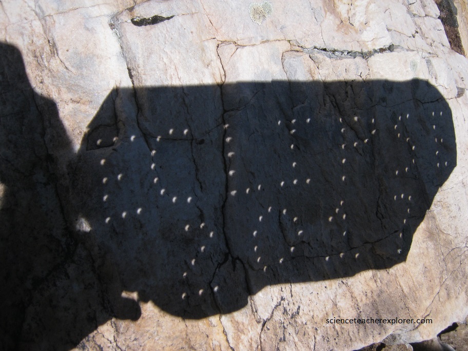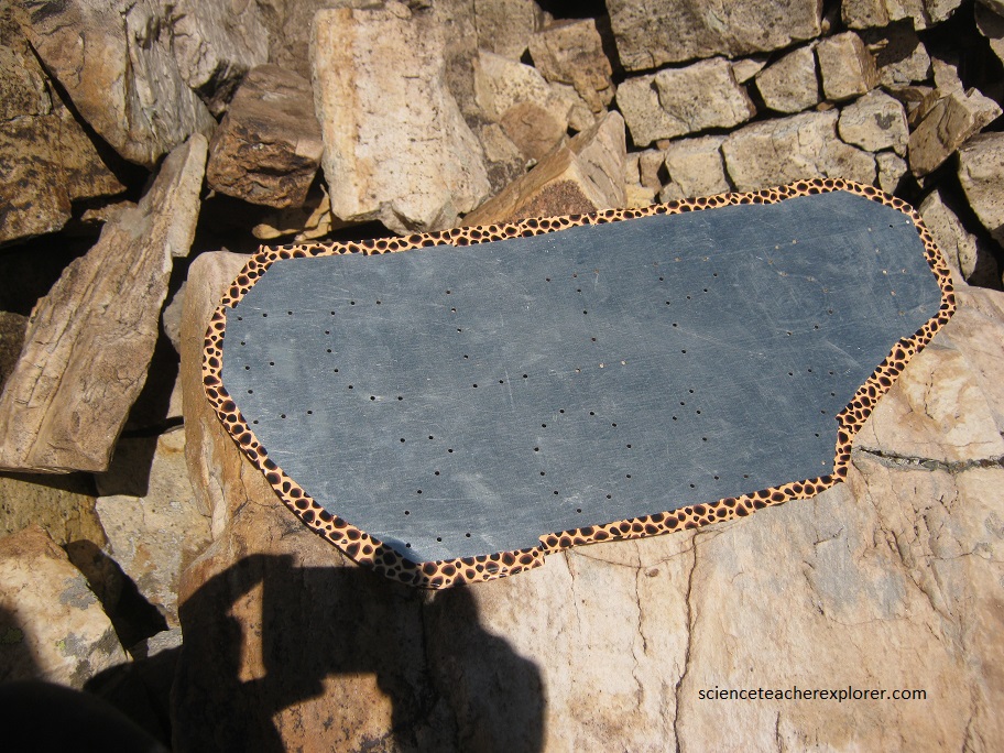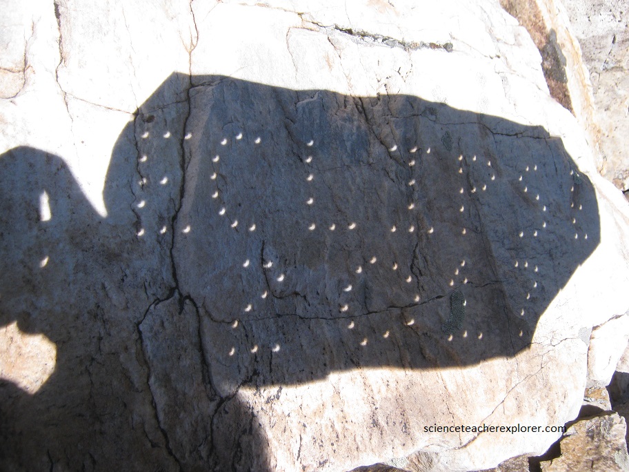 (Pictured above) I’m looking across Death Canyon, and is an example of a u-shaped valleys that was carved out by a glacier. (Pictured below), is a punched Tin-plate that spells-out, “Eclipse 2017”. This provides small pin-hole images of the partial eclipse, before and after totality.